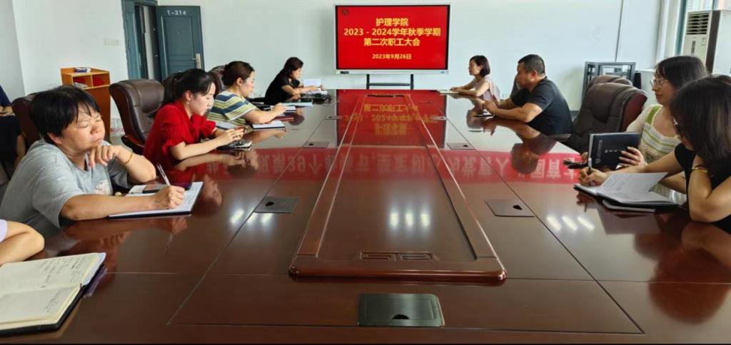 9月26日下午,beat365官方网站在1号实训楼314会议室召开2023-2024学年秋季学期第二次职工大会,全体教职工参加会议,会议由beat365官方网站副院长胡颖辉主持。