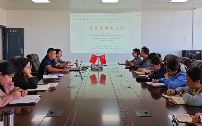 本学期beat365官方网站全体教师掀起了一股学习《beat365官方网站应用型高校建设方案》的热潮,旨在明确发展方向,凝聚奋进力量,为打造高水平应用型医学普通本科高校奠定坚实基础。11月6日学院再次召开会议,进一步深入学习该方案,对方案中的关键任务指标进行详细解读,本次会议由学院综合办主任吴荣叶主持,学院主要领导胡颖辉、陈敏及全体教职工参加会议。